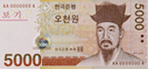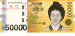 | 50,000 won (oman won) | 10,000 won (man won) | 5,000 won (ocheon won) | 1,000 won (cheon won) |